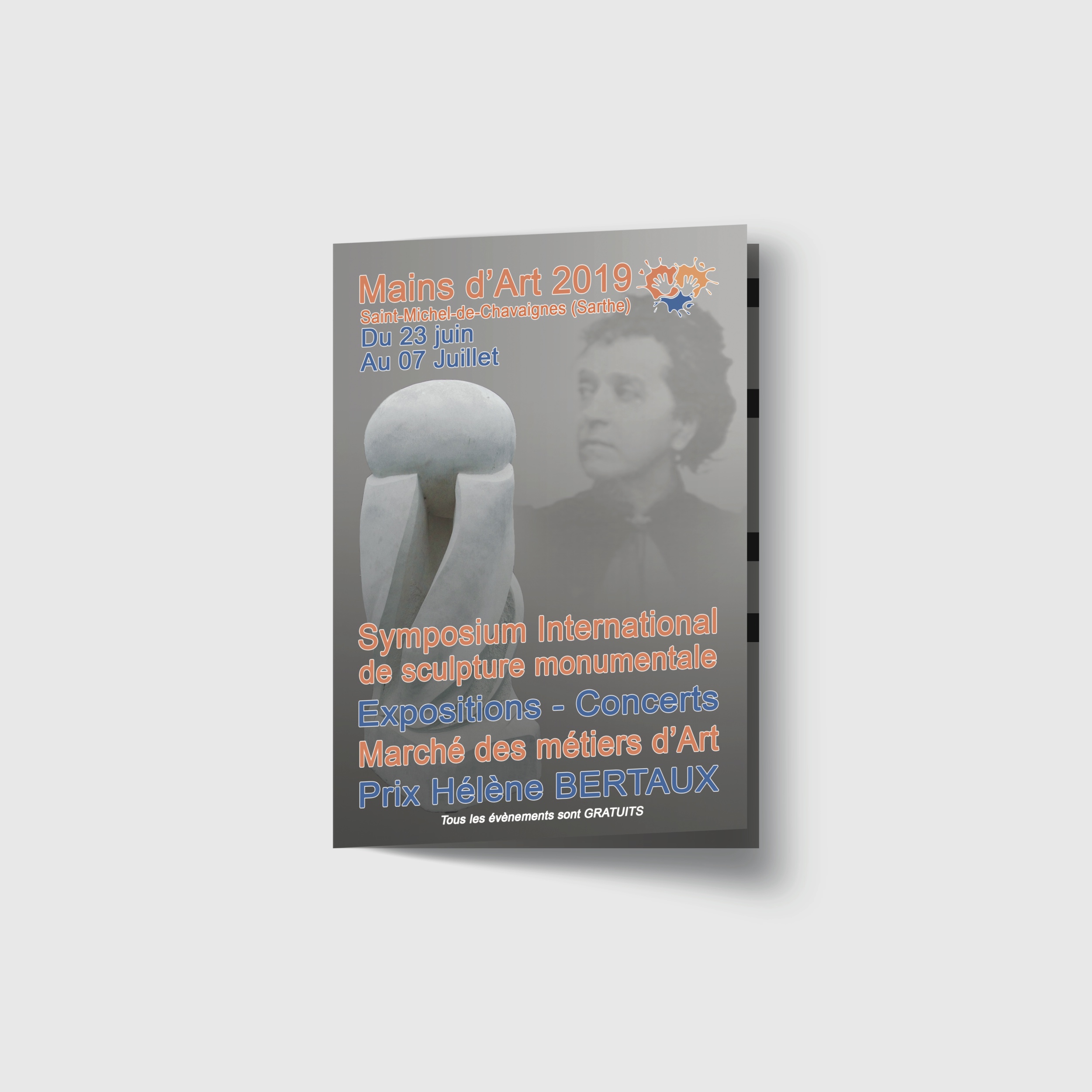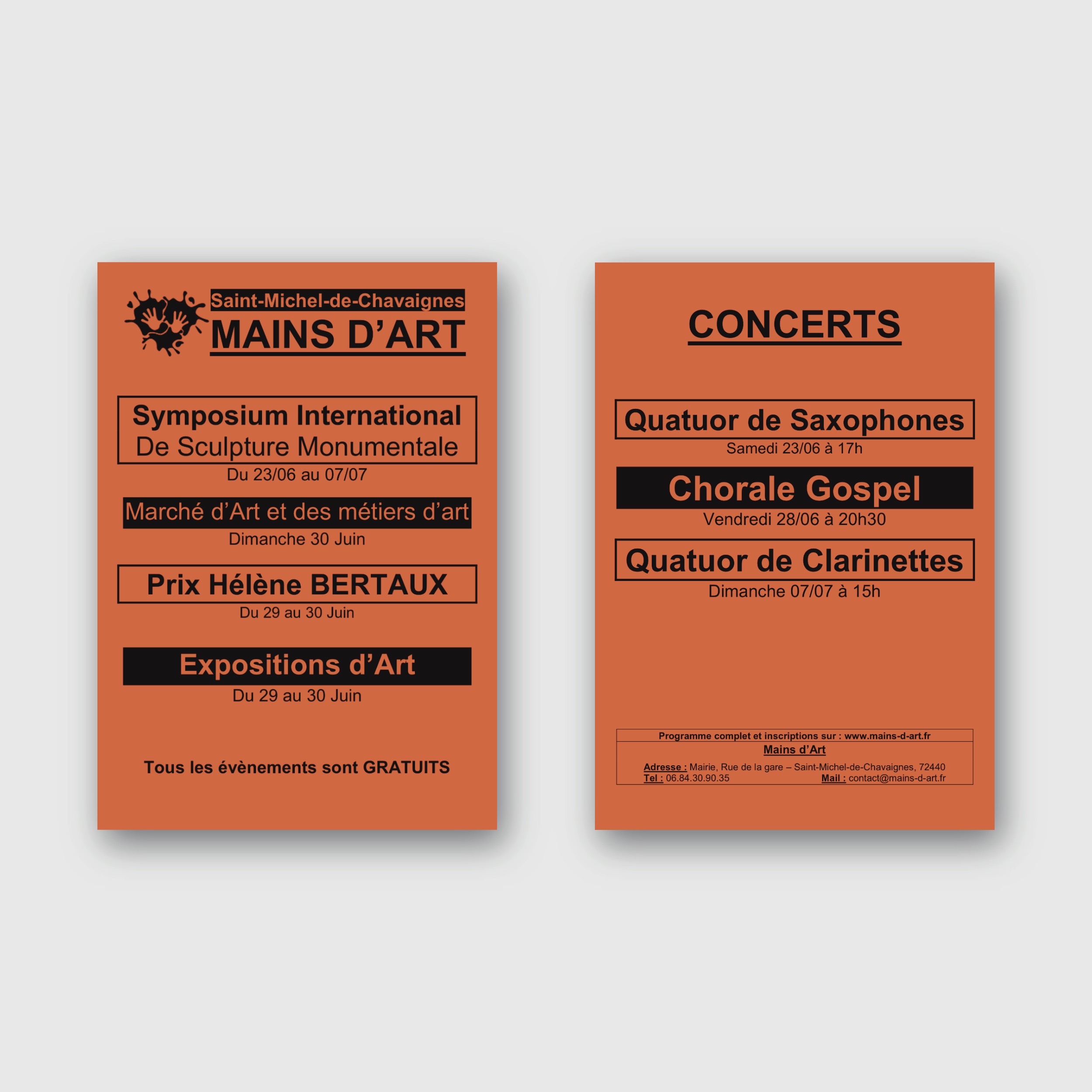 Cette affiche est celle qui a le plus été utilisée pour promouvoir la manifestation organisée par Mains d’Art. J’ai par la suite réadapté son design pour l’utiliser sur le flyer reprenant l’ensemble des informations liées aux divers évènements mis en place.